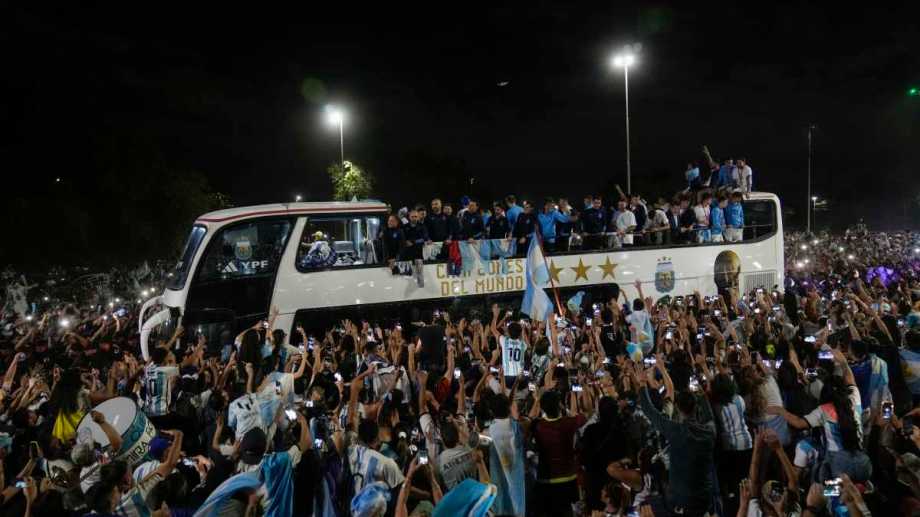 Una multitud recibió a la Selección argentina este martes a la madrugada luego de salir campeón del Mundial Qatar 2022.