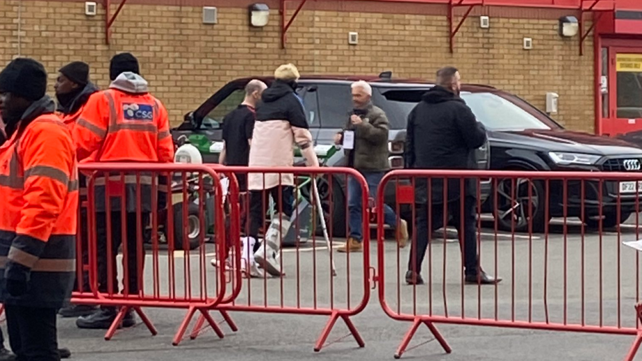 La prensa inglesa retrató la salida de Garnacho del estadio con una bota de protección en la pierna derecha y caminando con la ayuda de muletas.