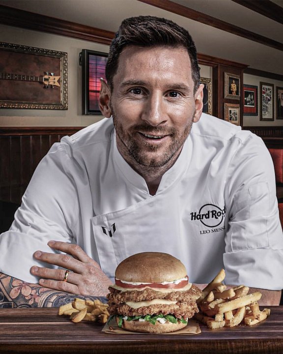 La cadena de restaurantes Hard Rock Café presentó un spot donde se lo ve a Lionel Messi vestido de cocinero en lo que fue el lanzamiento de un nuevo sandwich de pollo que llevará su nombre para promocionar la llegada del jugador argentino al Inter Miami.
