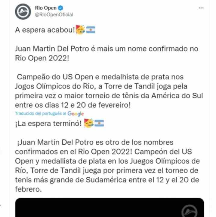 El ex número 3 del mundo disputará el ATP brasileño que se disputará en la superficie de polvo de ladrillo entre el 12 y el 20 de febrero. De esta manera, el ganador de dos medallas olímpicas tendrá actividad asegurada en los primeros meses del año.