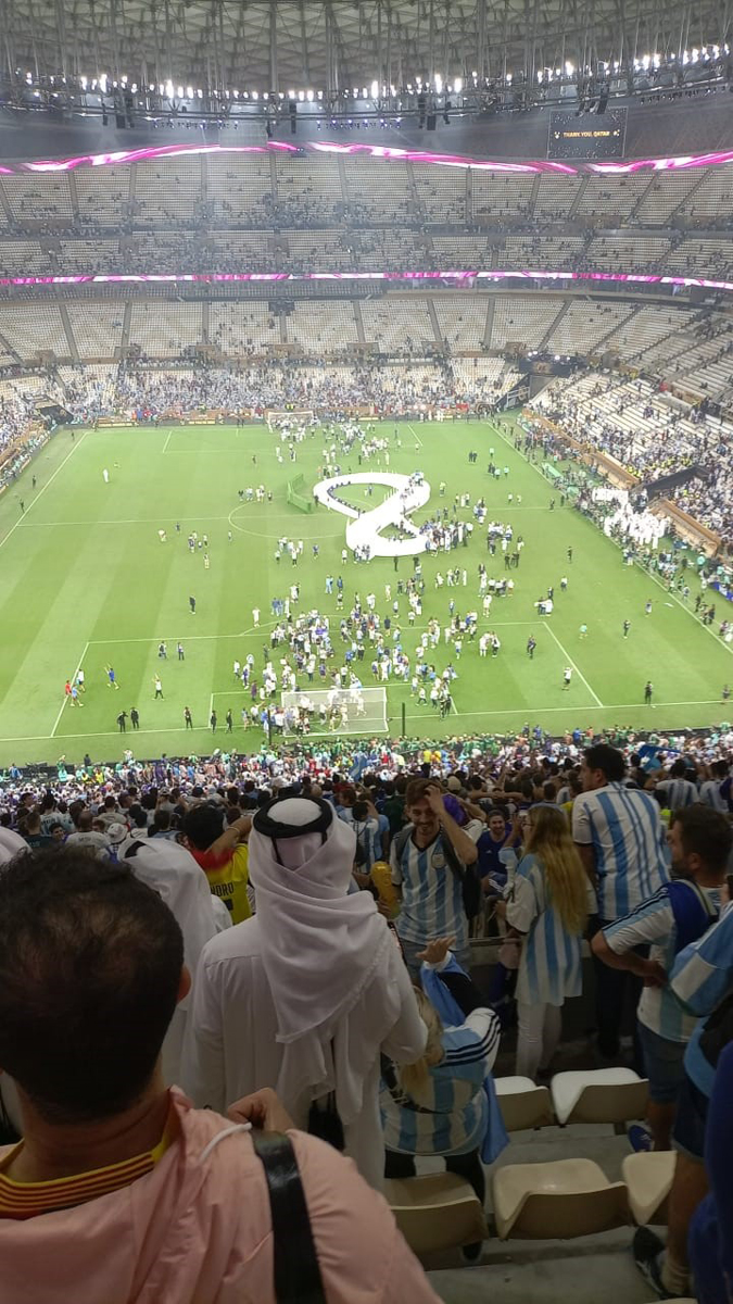 Sería el primer momento inolvidable de una serie que ya es eterna. Porque siguió esa clase magistral de fútbol en una final del mundo. Abrir bien grandes los ojos para abarcar tanto: el penal de Messi a lo Diego, esperando que el arquero se mueva y empujarla al otro palo. El tiki tiki glorioso que se hizo viral para el segundo y Angelito que le agrega un escalón sublime a su leyenda. Todo eso y cantar y saltar con los argentinos y los de los otros países que se quejan, piden que se sienten, llaman a seguridad. Los de seguridad que vienen, los argentinos se sientan y cuando se van se paran de nuevo. Y los otros que se enojan. Y otra vez seguridad.