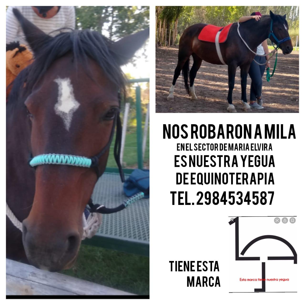 Se inició una búsqueda desesperada para dar con una yegua antes de que la faenen. Se trata de Mila, que es parte del centro de equinoterapia "Welun Hueney", ubicado en una chacra que pertenece a Fernández Oro, pero la que se ingresa desde Cipolletti.
