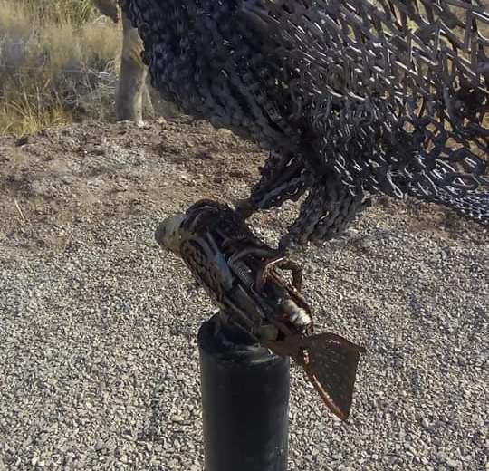 Las obras de arte fueron realizadas por los hermanos Ezequiel y Gerardo Zapata, y fueron colocadas en el portal de ingreso de la localidad de Piedra del Águila.