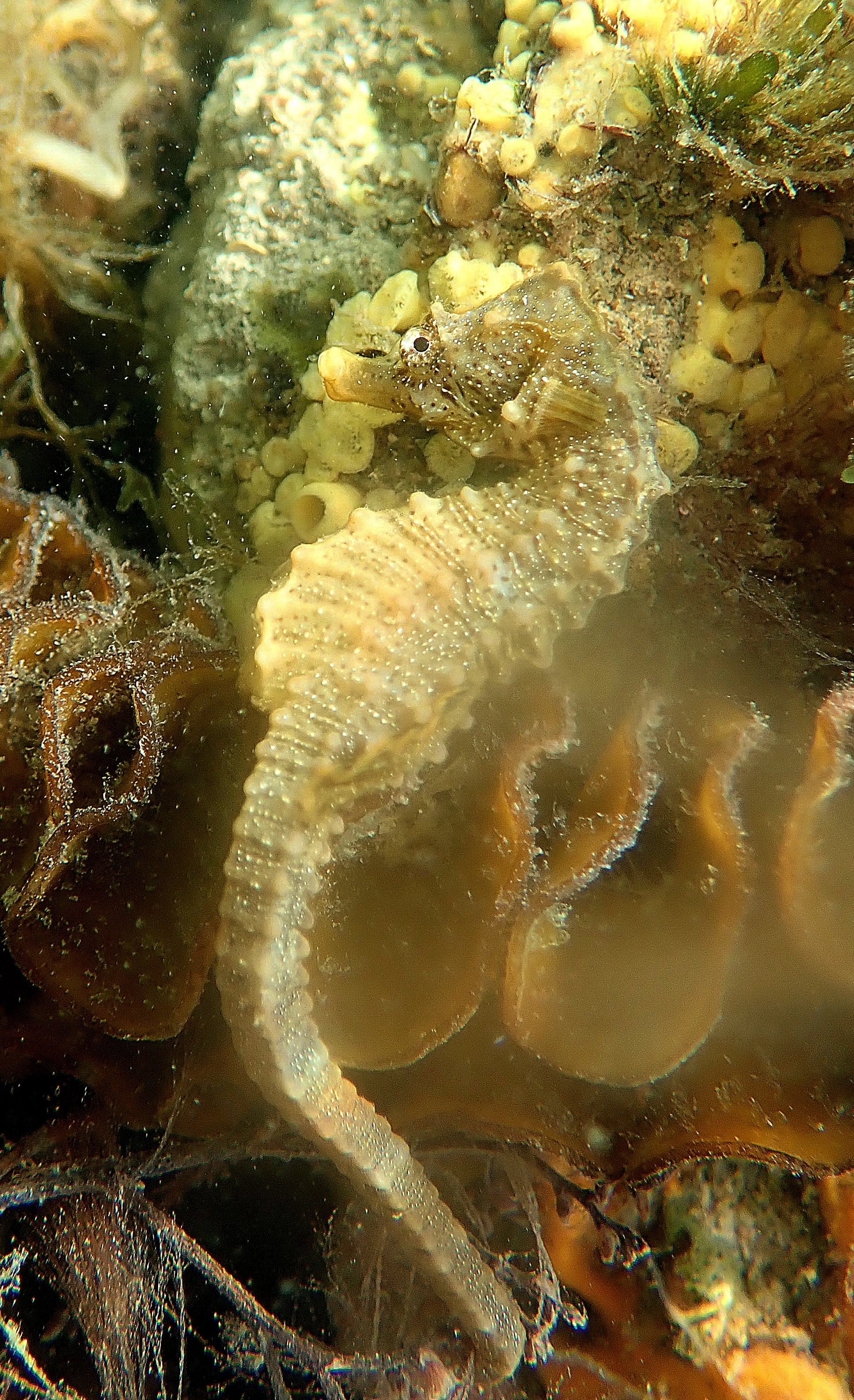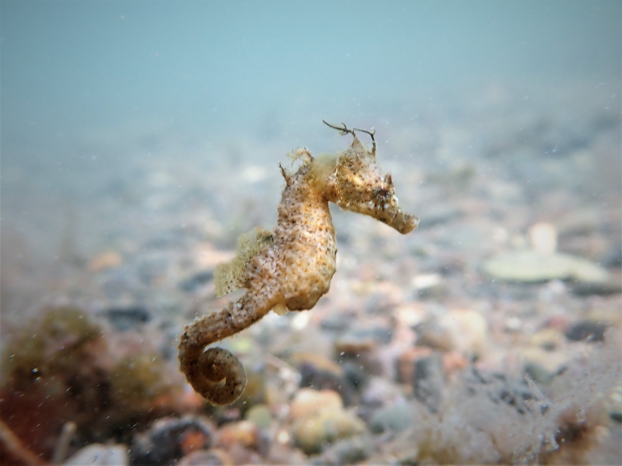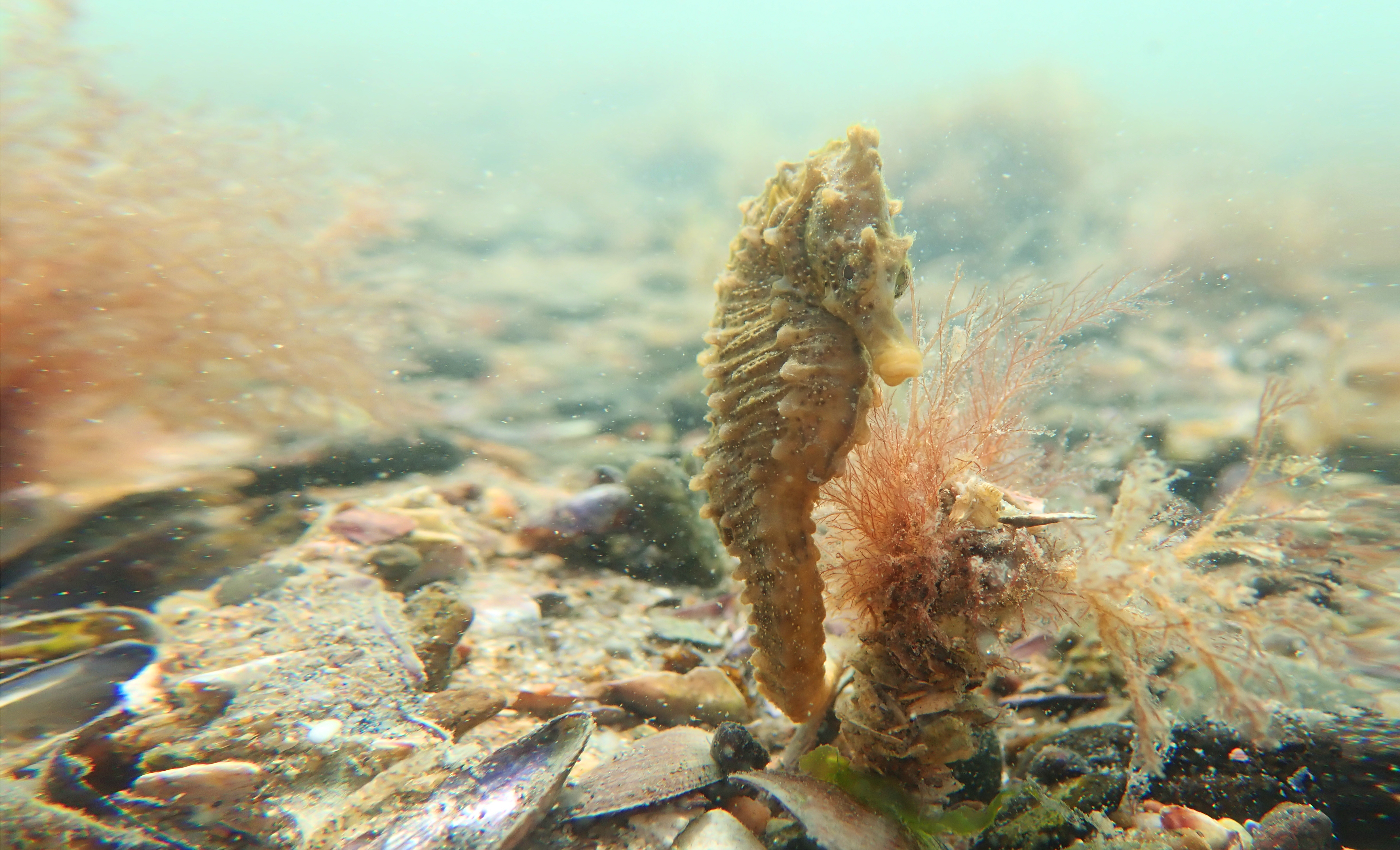 Estos caballos no galopan, se deslizan por el mar cerca de la costa, entre praderas de algas. Con sus colas enroscadas se aferran a los sustratos y buscan alimento. Se mimetizan con el ambiente y Diego Luzzatto detrás de las antiparras de su esnórquel los mira. Ese hombre, que desde hace años los acompaña en la Bahía de San Antonio es una de las personas que más los conoce y dedica parte de su vida a protegerlos.
