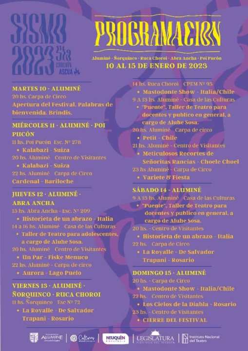 «Con el objetivo puesto en que el Teatro llegue a todos los rincones posibles, se harán funciones en el pueblo de Aluminé y en las Escuelas Rurales de las Comunidades Mapuches de Ruca Choroi, Poi Pucón, Abra Ancha y Ñorquinco», añadieron desde la organización.