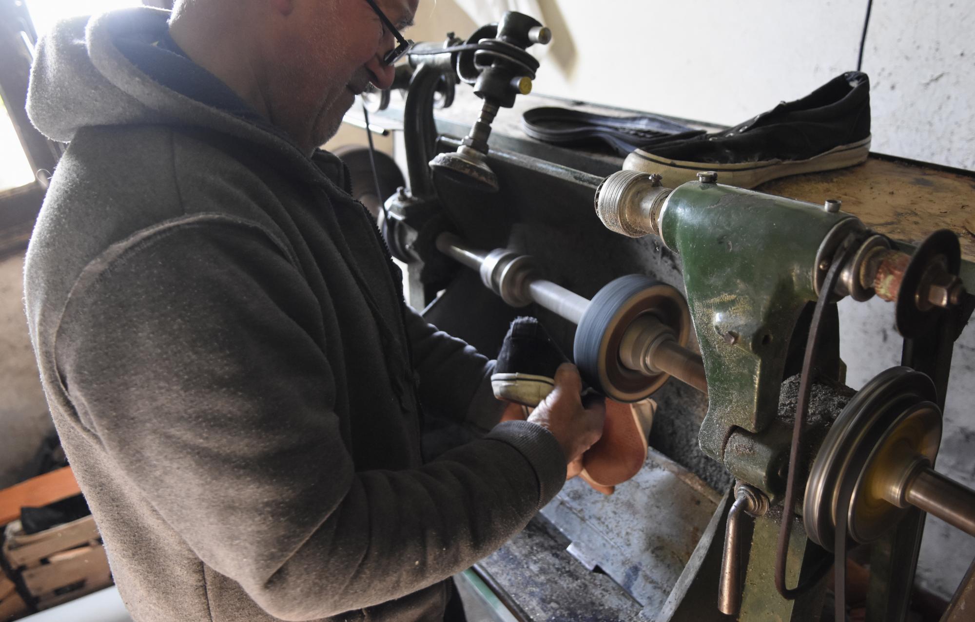 En un espacio contiguo una máquina italiana centenaria resuelve el limado de asperezas de las suelas recién pegadas y en un pasillo la luz de una lampara le entrega el protagonismo a una vieja máquina de coser, rodeada de bobinas de hilos de todos los colores. Manolo paciente de los tiempos que lleva su artesanal tarea, toma y deja cada par varias veces en el día, sabe que entregar un buen zapato es garantía para conservar un cliente.