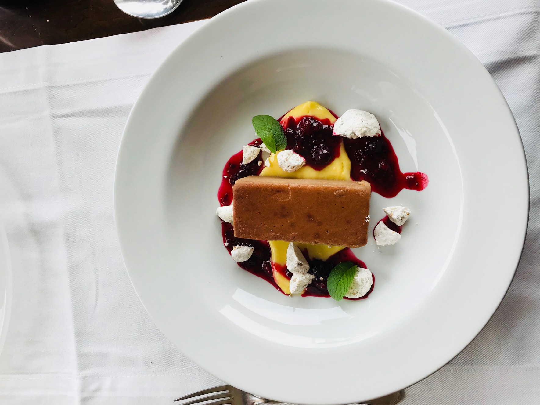 Croquetas de mozarela con crema de puerro y panceta, en simultaneo una sopa de kabuto asada, cremosa y con un sabor muy marcado. Una linda charla con su Maître Gastón Cofre me da la pauta que la trucha y el cordero son los productos regionales que más presencia tienen en la carta y que los únicos platos que no rotan son el marquise de chocolate y los capeletis rellenos de trucha. Los postres son un canto a la vida, sobre todo el pudín con crema de maracuyá y frutos rojos.