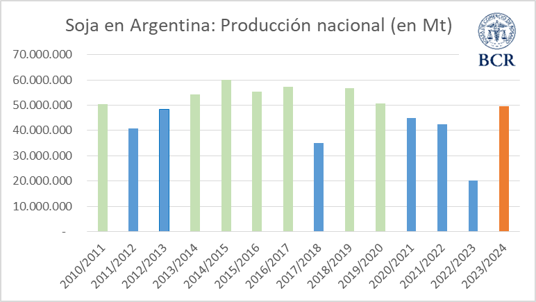 La Bolsa de Comercio de Rosario (BCR), en virtud de las condiciones del cultivo tras la severa ola de calor en el centro del país, recortó sus proyecciones para la campaña gruesa. En el caso de la soja, se estima una cosecha de 49,5 millones de toneladas (MT), lo que representa una corrección a la baja de 2,5 MT respecto de lo estimado en enero.