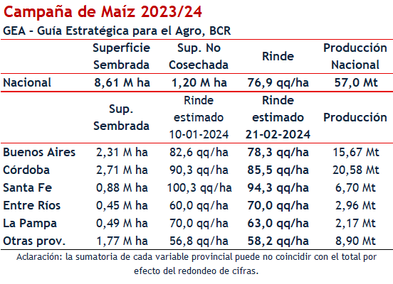 En el caso del maíz, el recorte en la estimación es de 2 MT. «Al igual que en la soja, las expectativas al 17 de enero eran muy distintas; el ambiente de alta producción también hacía pensar en una excelente campaña maicera», indicó la entidad en el informe.