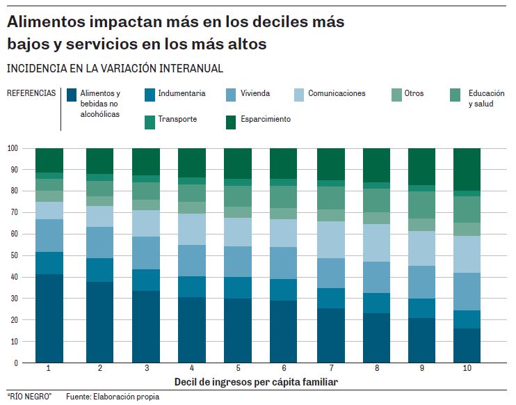 Los sectores de menores recursos se ven más afectados por la dinámica de los precios de alimentos que el resto, dado que destinan una mayor porción de su ingreso a satisfacer estos consumos de primera necesidad.