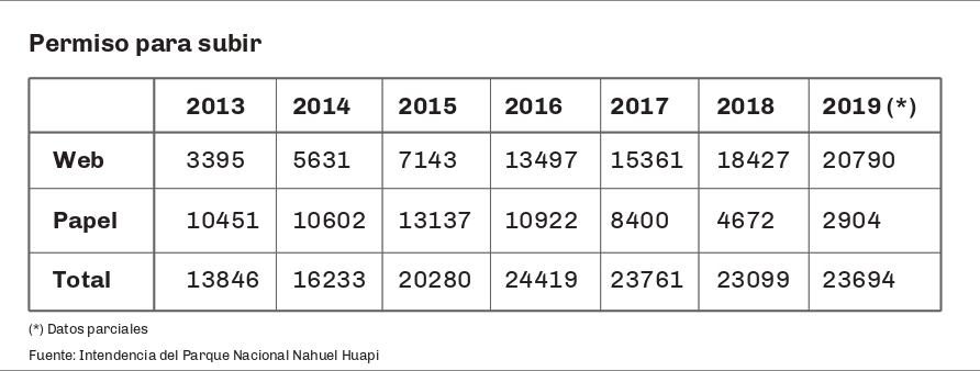 A lo largo del 2019, unas 23.694 personas completaron el registro de trekking (aunque los datos son parciales ya que falta procesar información). Este número fue en aumento desde la puesta en marcha del formulario en 2006, cuando solo 4.322 personas lo completaron. En 2009, ese número ascendió a 14.872 y los últimos cuatro años se mantuvo estable y hasta es probable que haya bajado, lo que no quiere decir que haya habido menos gente en los senderos.