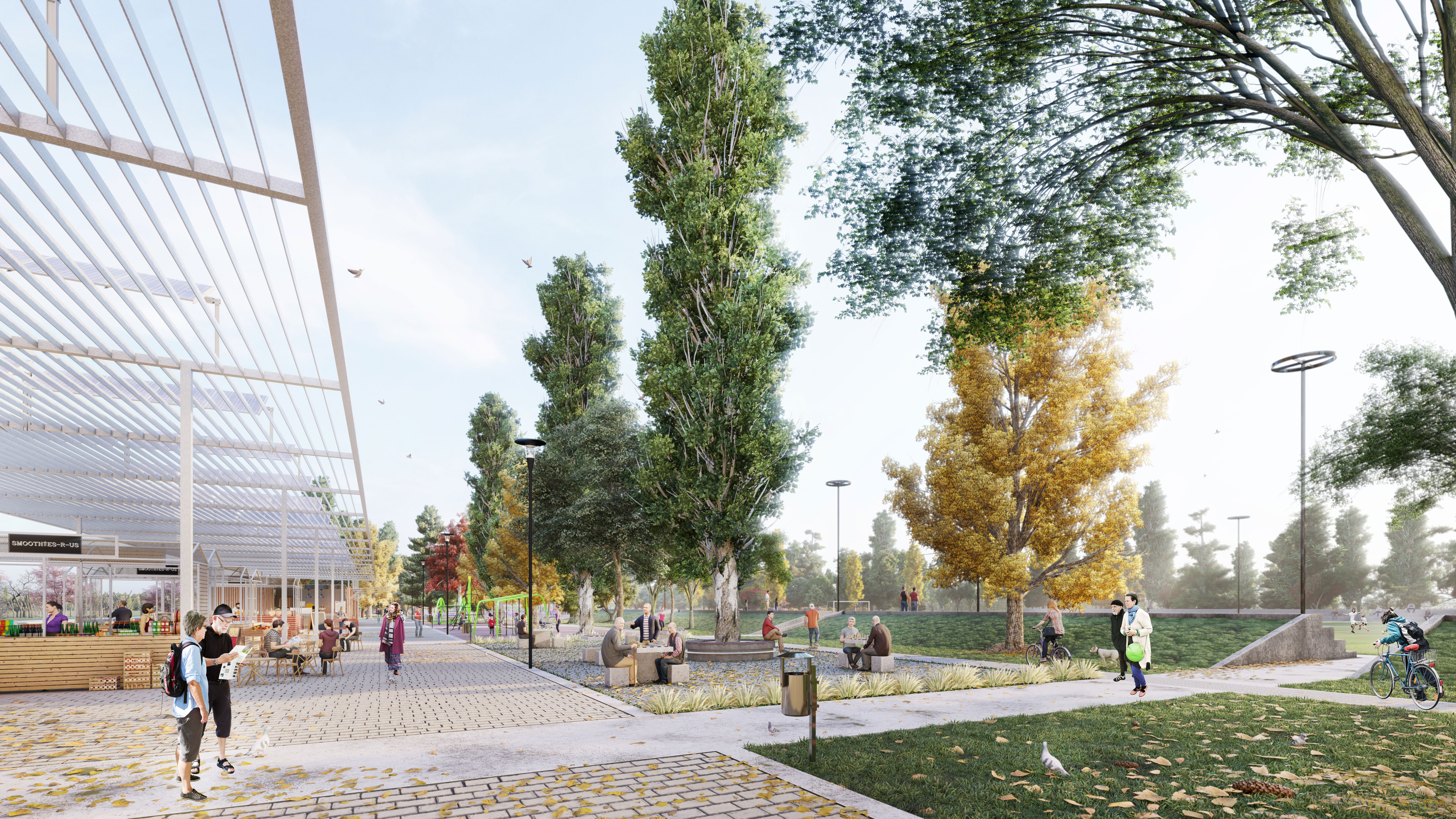 Render del Paseo Norte del gran complejo.