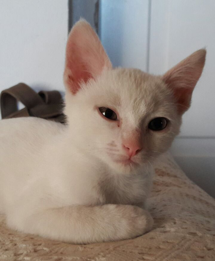 El cuidado y los mimos salvaron a Lázaro, el gatito blanco