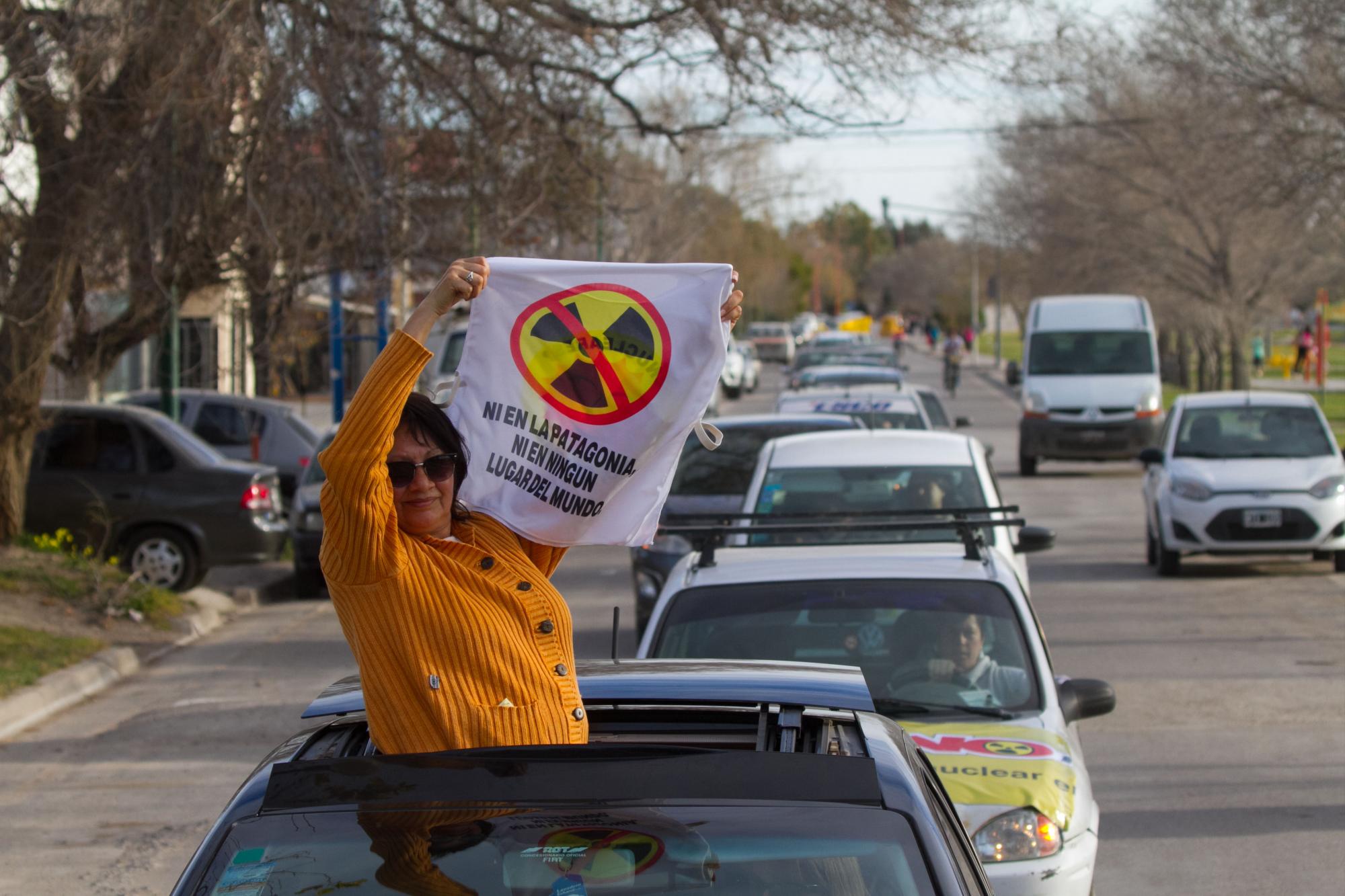 Una caravana se realizó en Viedma en la previa a la marcha nacional convocada desde la capital rionegrina para el martes 9, a otros puntos del país contra la central nuclear.