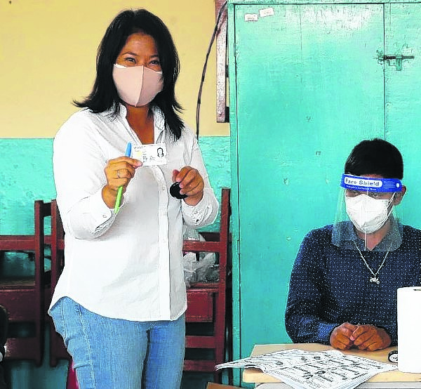 Keiko Fujimori, hija de un dictador condenado por corrupción y delitos de lesa humanidad, que continúa reivindicando el legado de su padre. Y también acusada de lavado de activos.