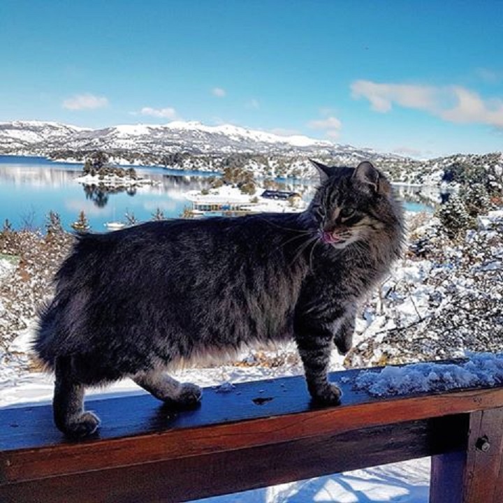 Después de haber sido elegido foto principal de la contratapa del Suplemento Voy del domingo, el gato de Quila Quila, fue visto caminando en la nieve por Gianfranco Falchini, otro de nuestros lectores. Pero no es el único felino en la cordillera. Pepe el gato que se relame en Villa Pehuenia, no tiene nada que envidiarle e Ismael Russo lo inmortalizó en su mejor pose. Y algunos más se sumaron desde otros patios fríos.