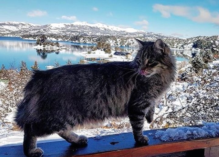 Después de haber sido elegido foto principal de la contratapa del Suplemento Voy del domingo, el gato de Quila Quila, fue visto caminando en la nieve por Gianfranco Falchini, otro de nuestros lectores. Pero no es el único felino en la cordillera. Pepe el gato que se relame en Villa Pehuenia, no tiene nada que envidiarle e Ismael Russo lo inmortalizó en su mejor pose. Y algunos más se sumaron desde otros patios fríos.