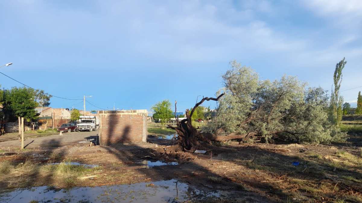 Uno de los sectores más afectados se encuentra en la entrada de la ciudad por Ruta N°65, donde un árbol cayó sobre el jardín de infantes N°99. «Destruyó parte del edificio«, detalló Godoy. Al lado cayó otro sobre el destacamento policial. Según señalaron desde el municipio «no hay registro de personas heridas«.