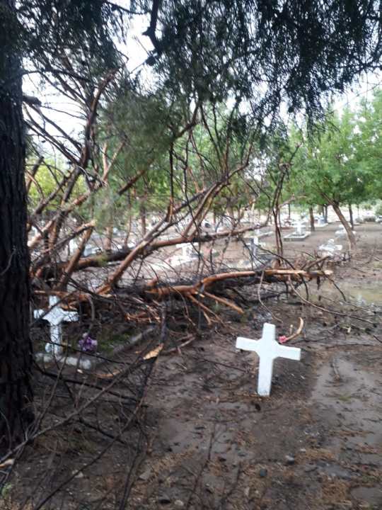 Por otro lado, detalló que en las chacras se volaron varios tinglados. «Al del puestero de la ruta se lo dejó arriba de los álamos». Señaló, igualmente, que al no haber construcciones altas en ellas, el viento no generó grandes daños en edificaciones.