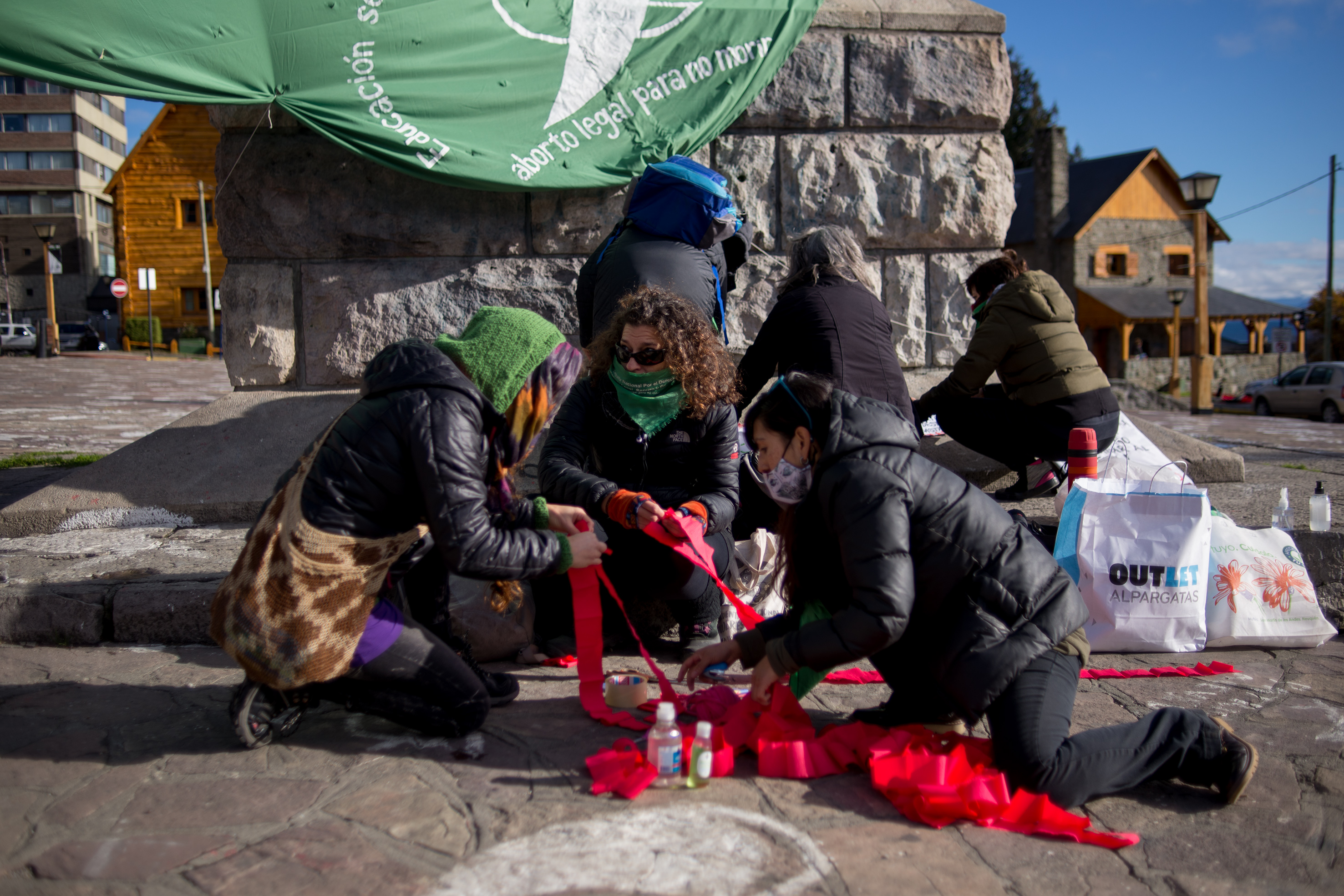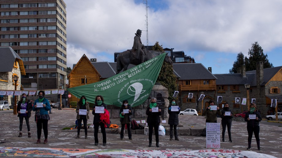 Un enorme pañuelo verde de la campaña por el aborto legal, seguro y gratuito, colgó desde el monumento a Julio Argentino Roca y dio inicio a una red de carteles con datos vinculados a la problemática. Ademas se exhibieron siluetas negras con nombres de víctimas de femicidio entre los que se encontraba una pequeña reseña de Nahiara, la niña de 3 años que fue asesinada el mes pasado en un paraje cercano a Los Menucos, en la Región Sur rionegrina.