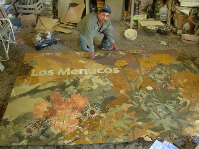 Mientras, construía artesanías en piedra laja, como relojes, mapas, ceniceros, bachas y mesadas. Luego, fue convocado para diseñar y hacer, con piedra laja, un bosque de lengas y araucarias en los pisos de la mansión que el empresario Joe Lewis levantó en Lago Escondido.