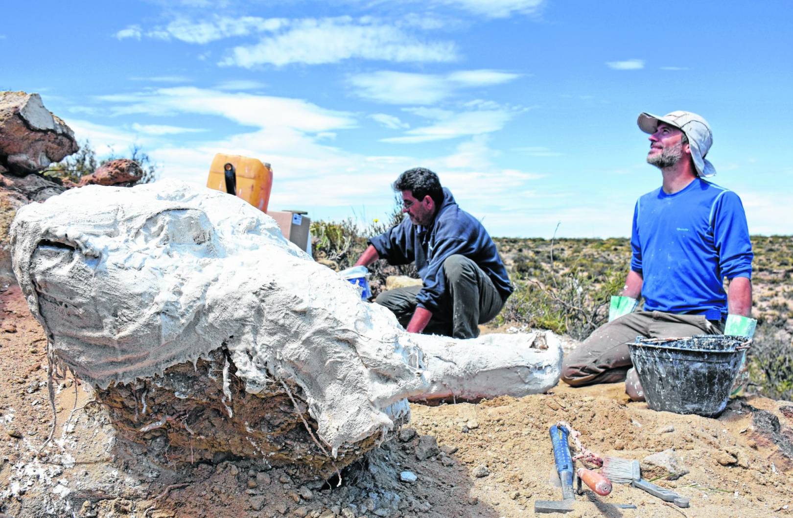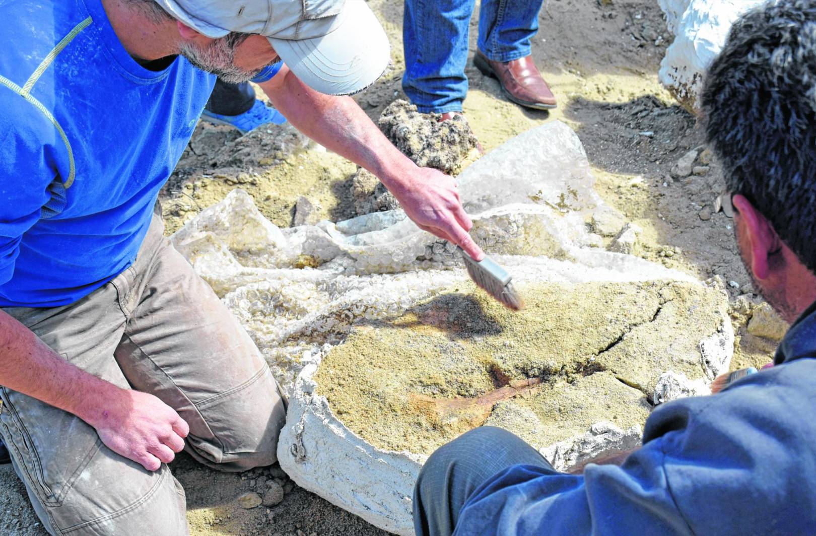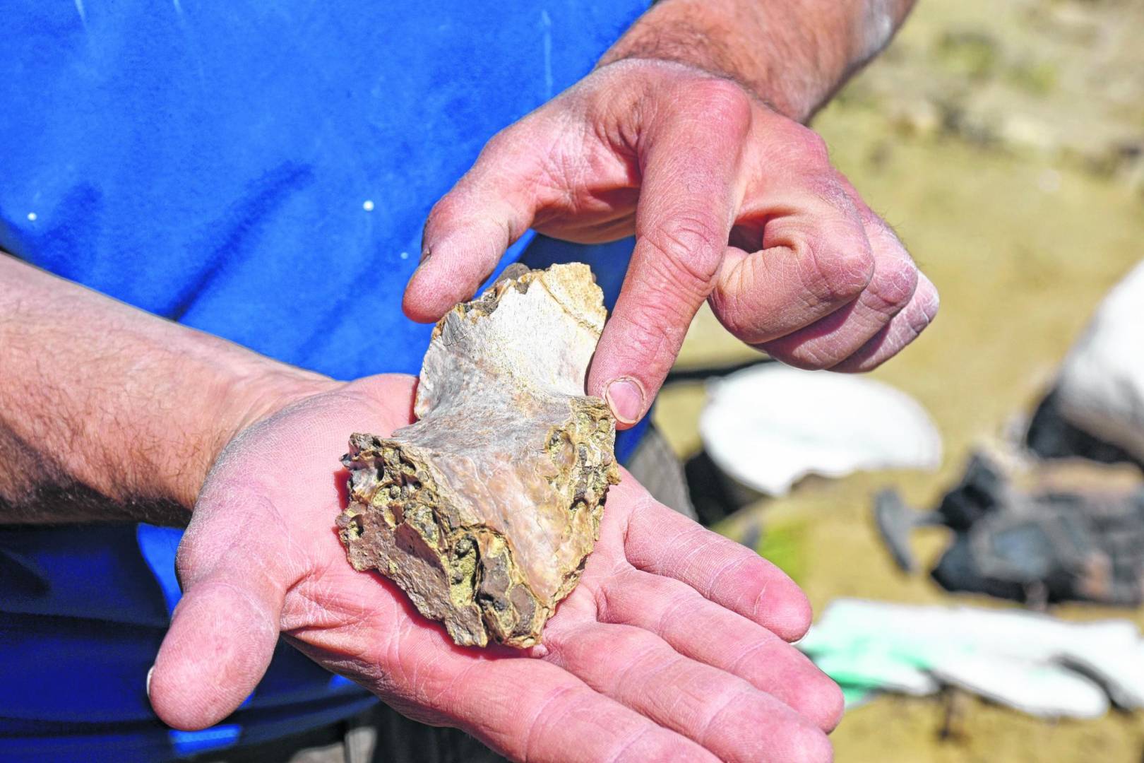 “En la excavación es muy importante preservar el hueso que encontramos. Hay que pensar que es un hueso petrificado, muy frágil, y si los sacamos sin protección se va a romper”, explicó el paleontólogo Flavio Bellardini, de la Dirección Provincial de Patrimonio Cultural.