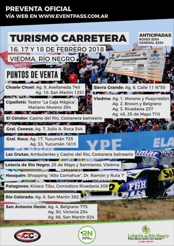 Mientras tanto, sigue la venta de entradas anticipadas que tienen un valor de 550 pesos para boxes y 250 para generales. Se pueden adquirir en los puntos de ventas o a través de la página web de Eventpass.