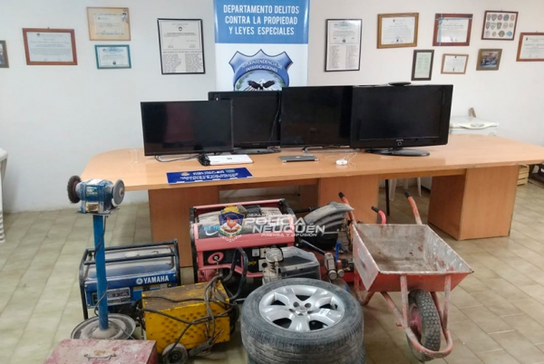 También se secuestraron cuatro televisores LED, dos notebook, dos ruedas de vehículos y una carretilla. Además se encontraron distintas herramientas, entre ellas dos compresores de aire, una amoladora, una maquina de hacer roscas y una soldadora.