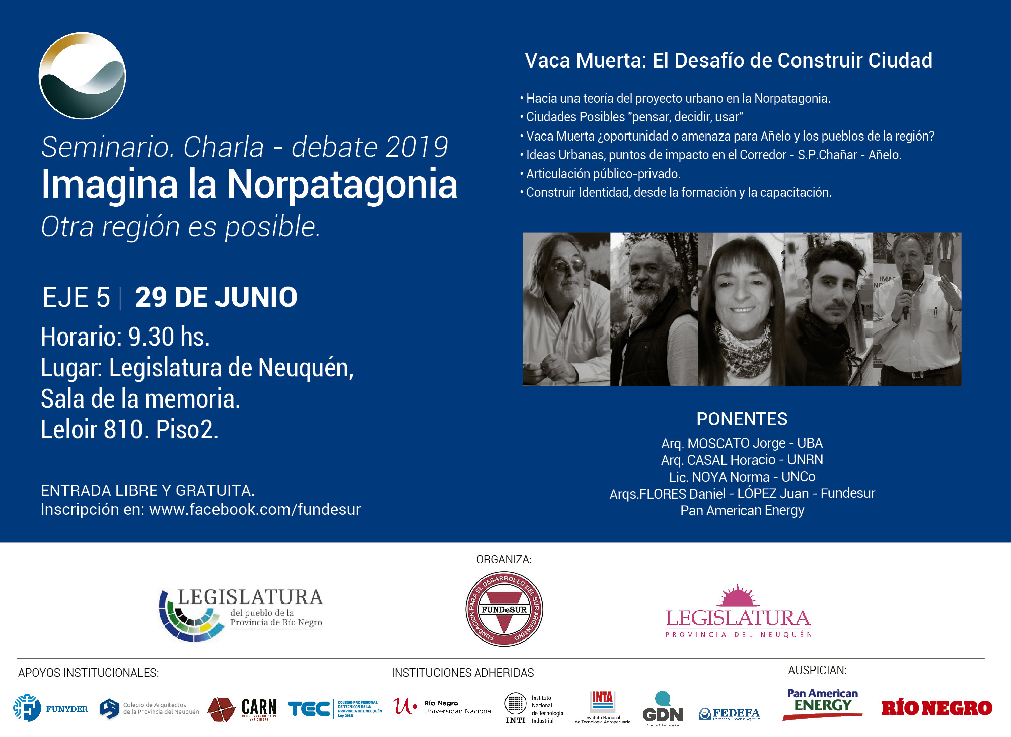 El ciclo cuenta con la adhesión y el apoyo de nueve instituciones, y con el auspicio del Diario Río Negro y de Panamerican Energy.