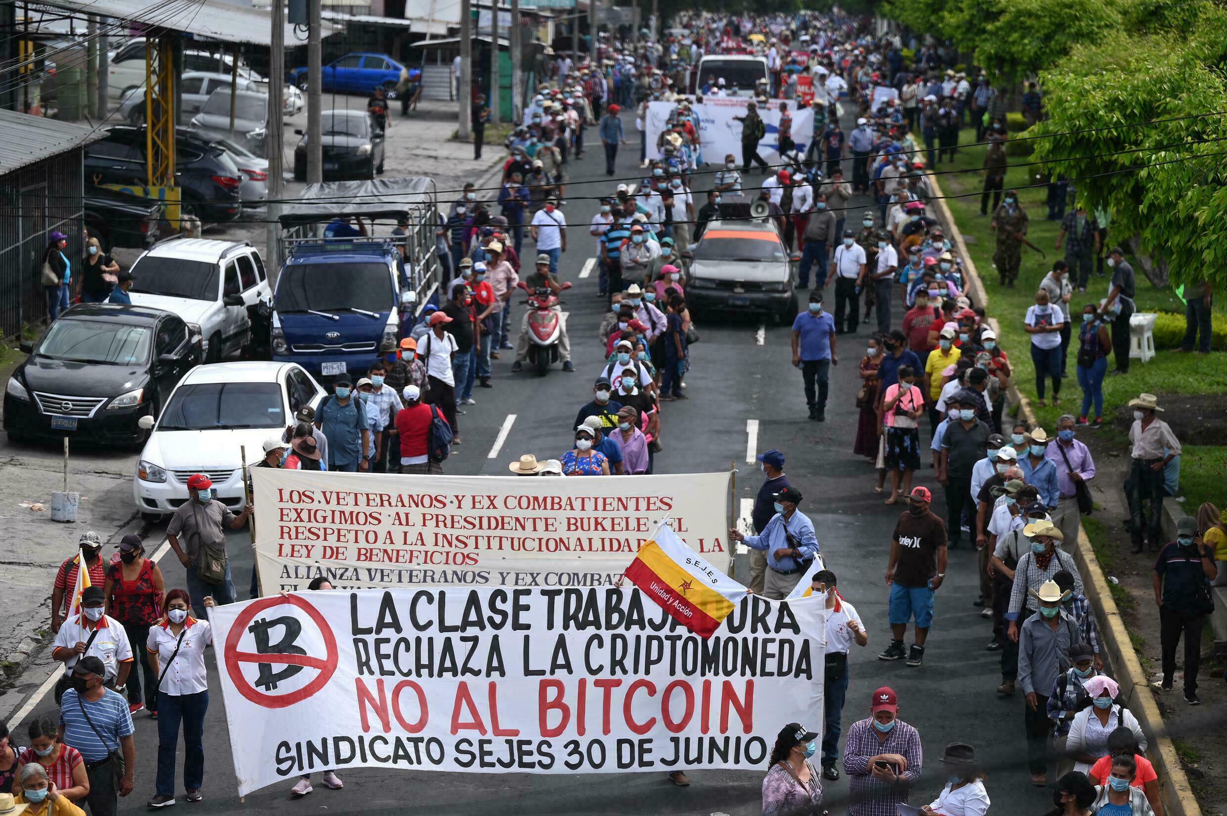 Según una encuesta de la Universidad Centroamericana (UCA), 7 de cada 10 salvadoreños señalaron estar «en desacuerdo o muy en desacuerdo» con el bitcoin. Hoy hubo movilizaciones en contra en la Plaza al Divino Salvador del Mundo, por un lado, y en las cercanías del Centro Histórico de San Salvador, por el otro, para marchar hacia el Congreso.