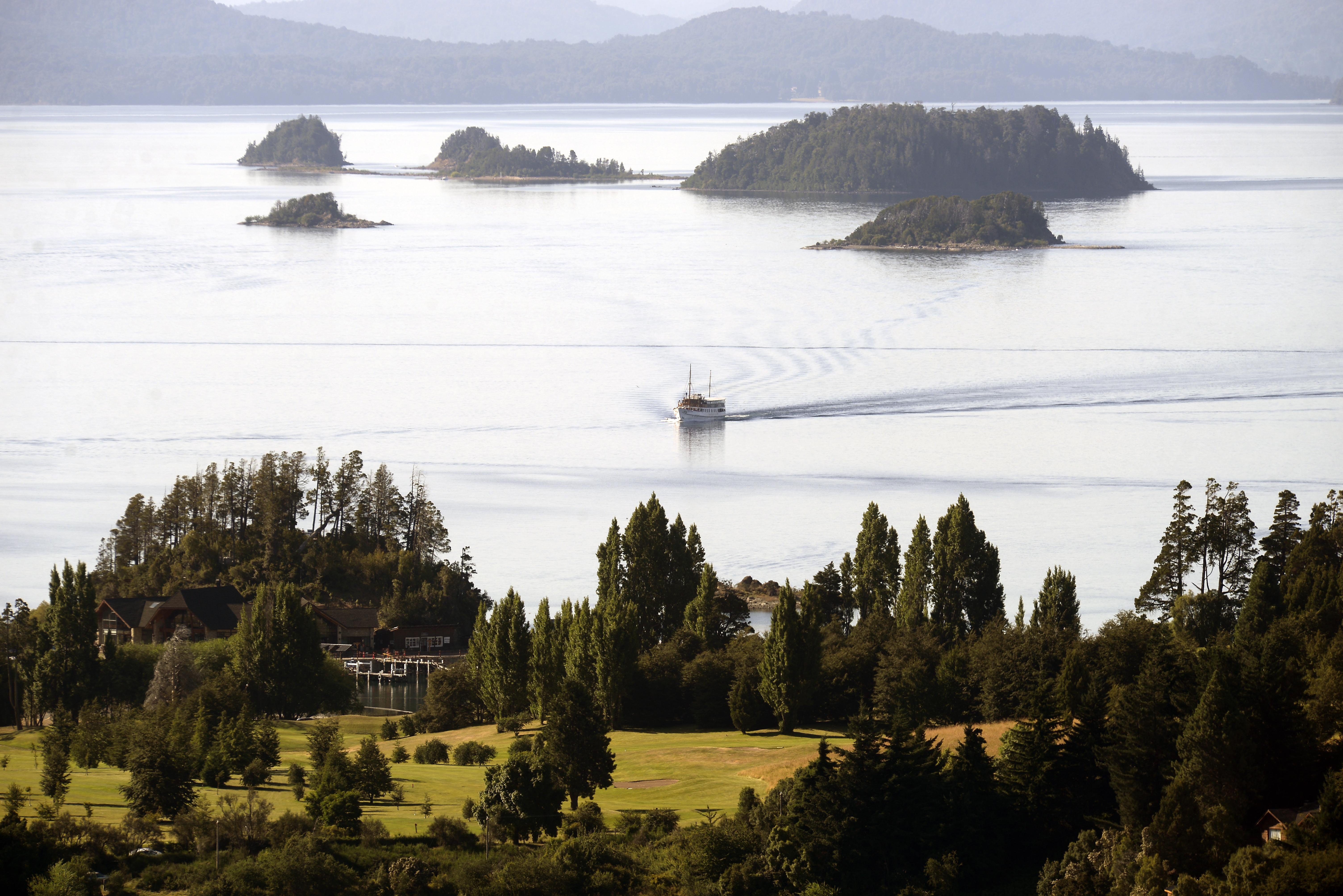 Una postal única. La Modesta Victoria llega al puerto Pañuelo, en el lago Nahuel Huapi. Foto: Alfredo Leiva