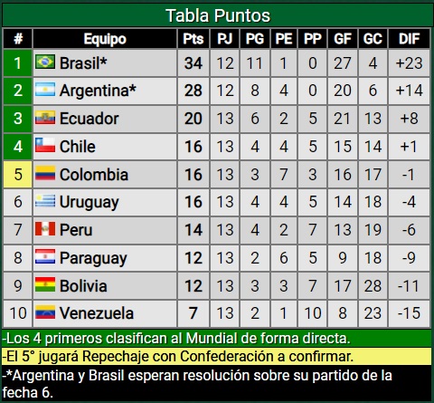Más atrás quedaron Paraguay (12) y Bolivia (12), que tienen chances matemáticas, pero están más complicados. Lo de Venezuela (7) ya es un hecho, casi eliminado de Qatar.