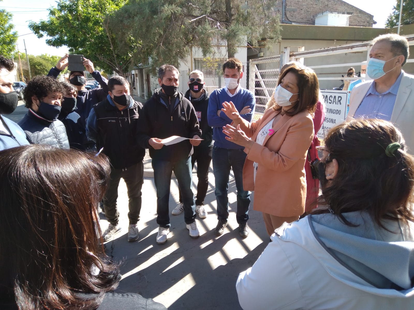 Durante las actividades representantes de los sindicatos de la Fruta, del Empaque y del Hielo, junto a trabajadores de la Cooperativa La Reginense, se reunieron con la gobernadora Arabela Carreras para plantear la crítica situación que vive la empresa y el pedido de gestiones para el pago de salarios adeudados.
