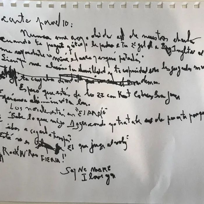 En el manuscrito titulado «Carta para el 10», el ex integrante de Serú Girán agregó: «Espero que estés en el club de los 27 con Kurt Cobain, Brian Jones y gente buena. Espérame ahí… Invita la casa. No te equivoques con el paraíso».