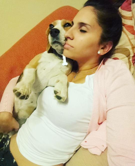“¡¡Hola!! Mi mascota es una perra Beagle. Se llama Helena. Tiene tres años y medio. Y tal cual como se la vé en la foto es muy cariñosa”.