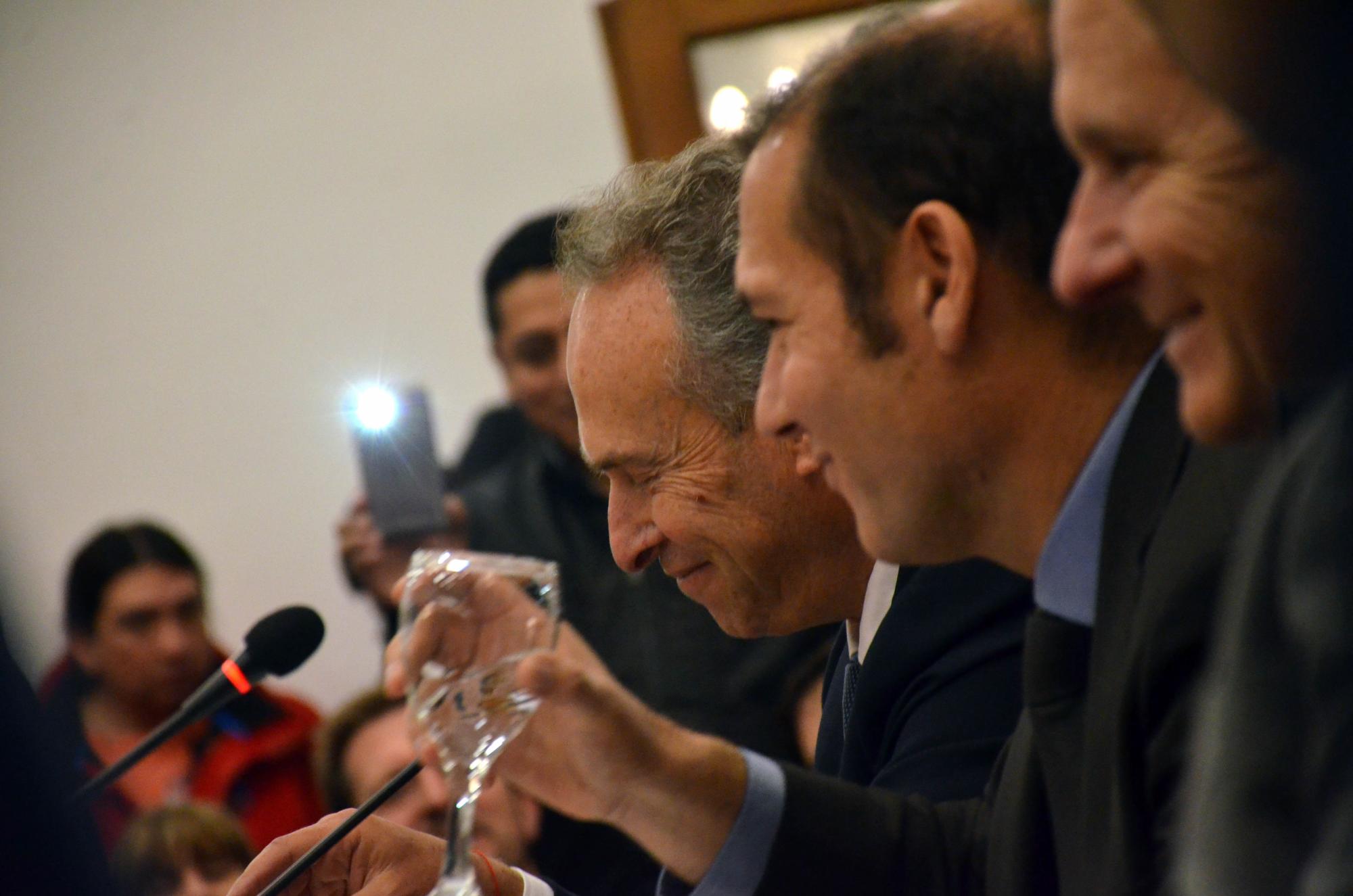 El gobernador, por su parte, aprovechó la presencia de su adversario político Ramón Rioseco, diputado del Parlasur, para defender el “sí al caño”, con relación al gasoducto que el cutralquense había criticado. “Si no hubiésemos firmado El Mangrullo, el gasoducto no se estaría llevando adelante. Una inversión genera otra inversión”, sostuvo. Dijo que son obras necesarias para obtener precios competitivos y recuperar “la senda exportadora”.