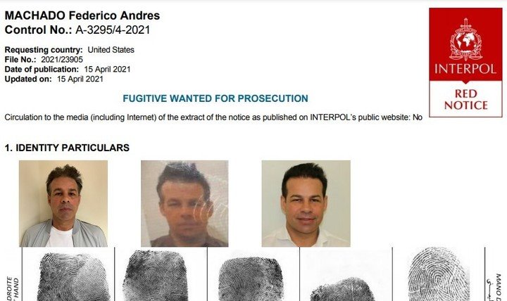 La detención lanzada por Interpol fue requerida por el gobierno de Estados Unidos por acusaciones de narcotráfico en gran escala, lavado de dinero y fraude electrónico. Machado es dueño de una empresa de aviones y, también, tiene inversiones en distintas actividades.