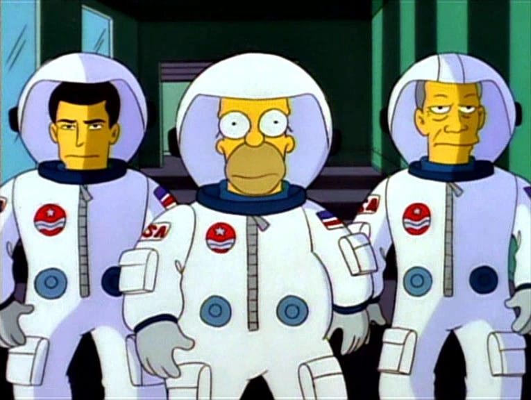 Otro cruce entre la NASA y los dibujos animados fue el estreno del capítulo de Los Simpson “Homero en el espacio profundo”, en 1994. Allí se hace referencia a una idea de la NASA de enviar “gente común” al espacio para atraer el favor de la opinión pública. Aparece Buzz Aldrin, el segundo hombre en pisar la Luna. En la versión original se escucha su voz.