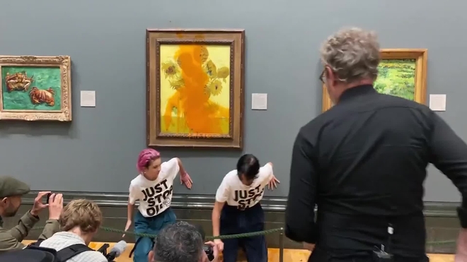 La acción del grupo «Just Stop Oil», que tuvo lugar la semana pasada sobre la pintura -protegida por un vidrio- creada en 1888 por el pintor impresionista holandés y valorada en 84,2 millones de dólares, se viralizó inmediatamente a nivel mundial, en un hecho de este grupo que se suma a otros realizados en julio de este año, en la Galería Nacional de Londres.