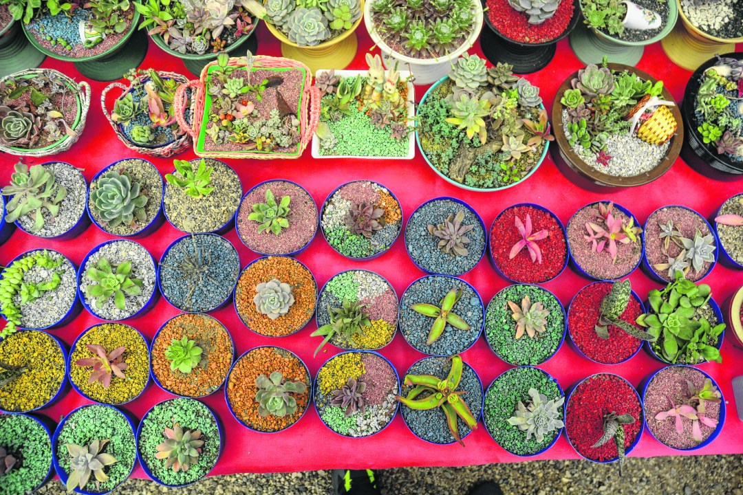 Dependiendo del tipo de mini jardín, los materiales utilizados son diversos, explica la mujer. Además de toda la variedad que aporta la familia de cactus y suculentas, también tienen piedras de distintos colores y adornos de diferentes materiales, tales como caracoles hechos de reciclados, casitas de cerámica o madera, jarrones, animales entre otros.