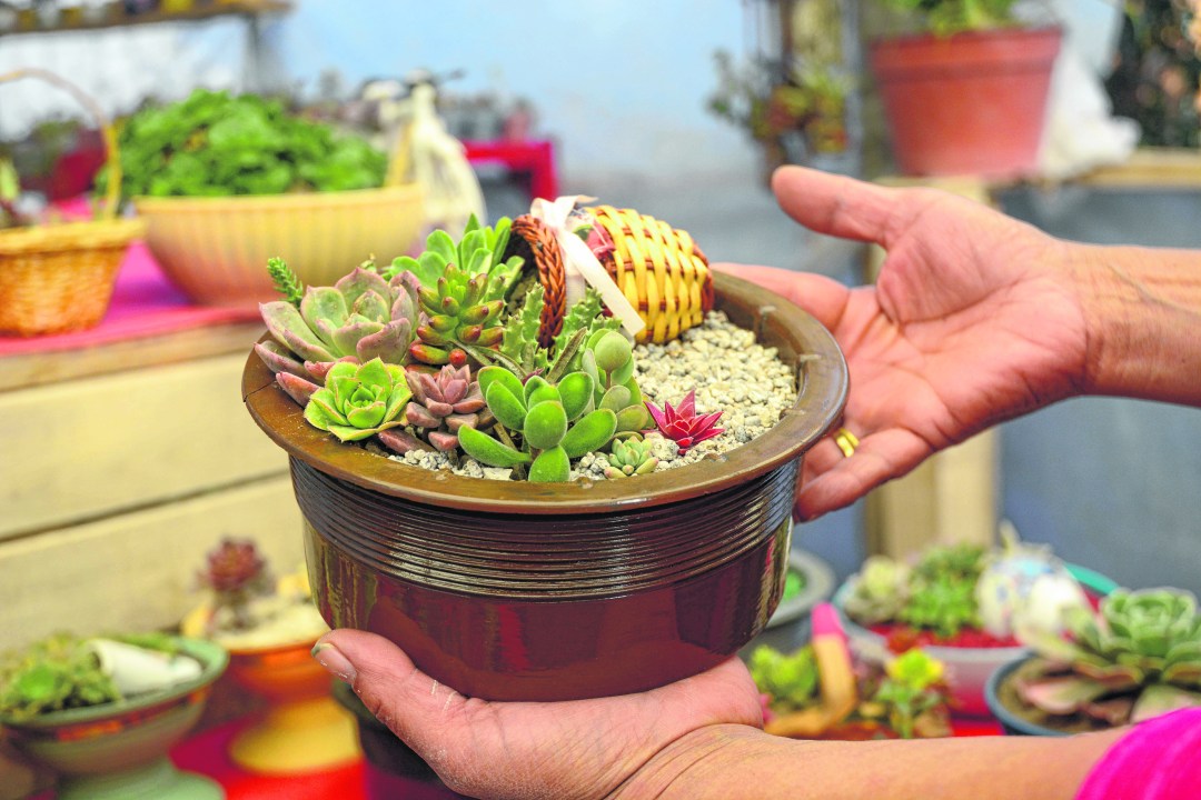 Las macetas utilizadas pueden ser plásticas, de PVC reciclado, latas, cuencos de barro o cemento, sostiene la experta. Ella misma las decora en su mayoría con pintura sintética, además de la técnica decoupage y alambrismo para sostener las diferentes figuras según los diseños.