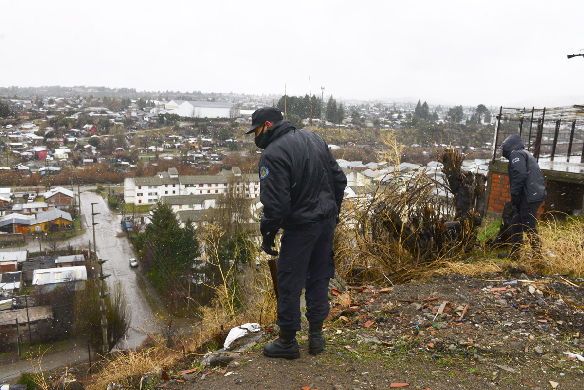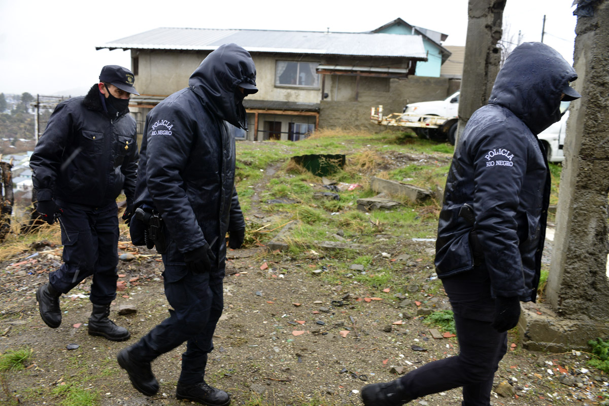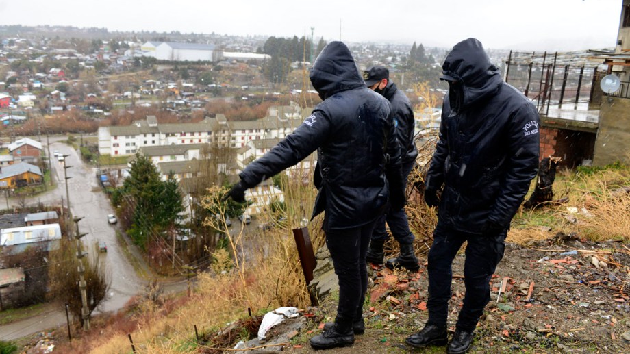 El teléfono de la mujer se secuestró en un primer momento; mientras que para el rastrillaje en la zona de la Barda del Ñireco se trajeron perros de El Bolsón pero no dio resultados positivos porque la intensa lluvia complicó la búsqueda de rastros de Lagos.