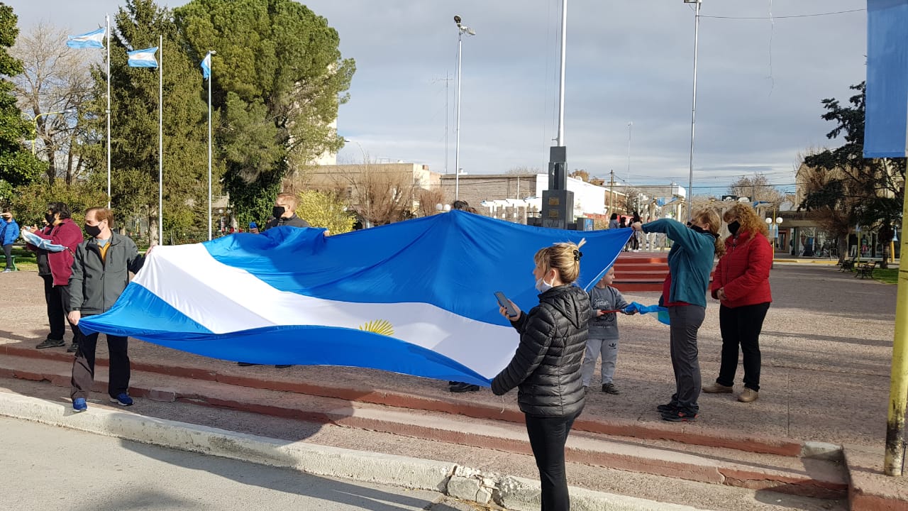 La doble columna de vehículos ingresó a la ciudad por calle 9 de Julio para comenzar con un extenso recorrido que tenía previsto, tal cual como se ha realizado en otras oportunidades, con la entonación del himno nacional en inmediaciones al Monumento a la Manzana, sobre avenida Roca y la zona del canalito.