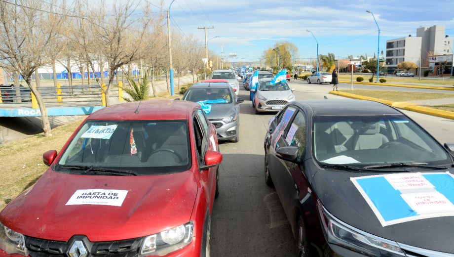 Pasadas las 16:15, una larga fila de automovilistas se concentró en calle San Juan. «Son cerca de 20 cuadras de vehículos y es una de las protestas más importantes de las que se han realizado en Roca», dijo uno de los organizadores de la movilización.