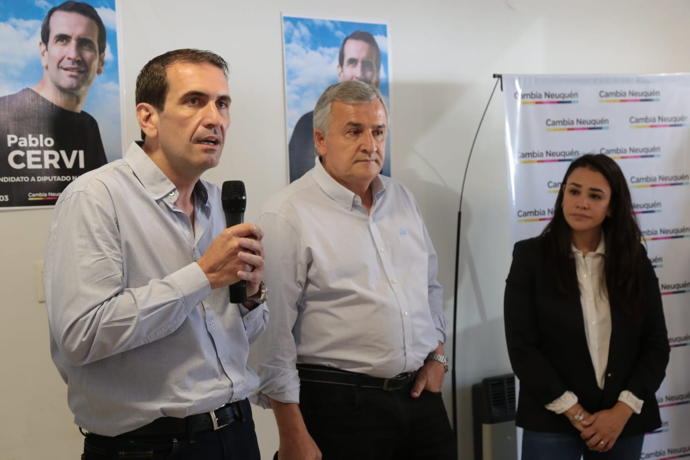 “Acá tenemos la lista y el candidato más votado individualmente en la elección”, manifestó Morales mientras señalaba a Cervi. “Le pido al pueblo de Neuquén que no desperdicie su voto”.
