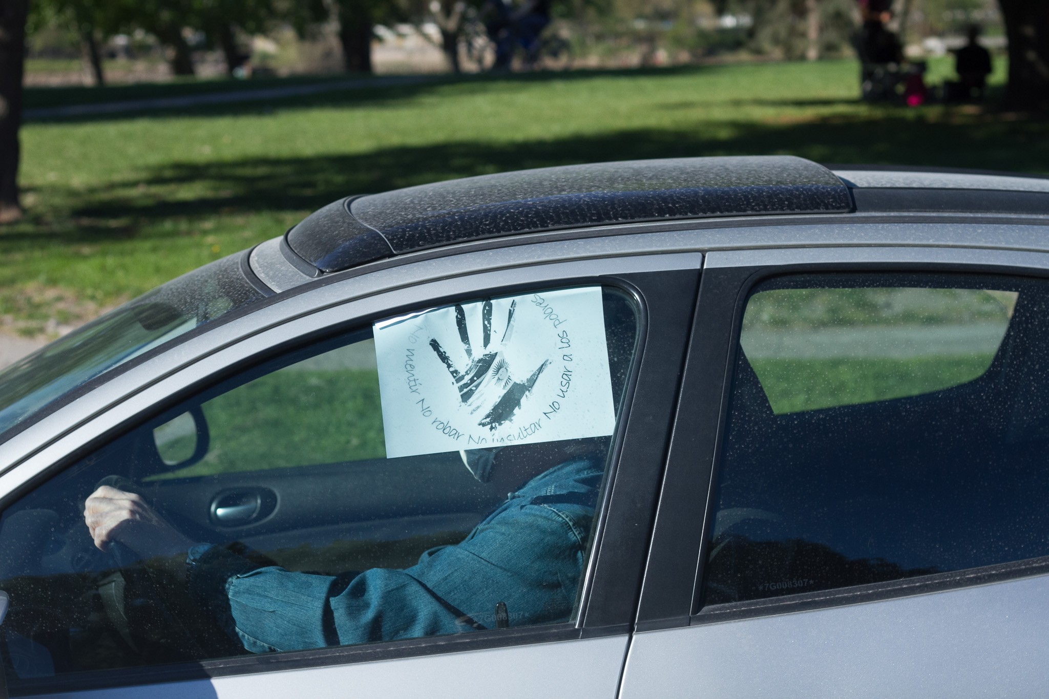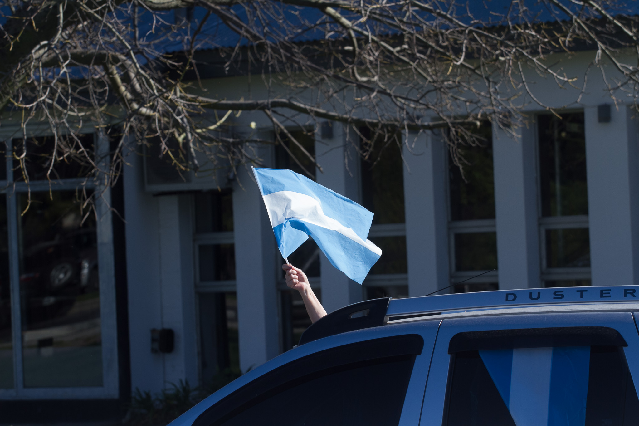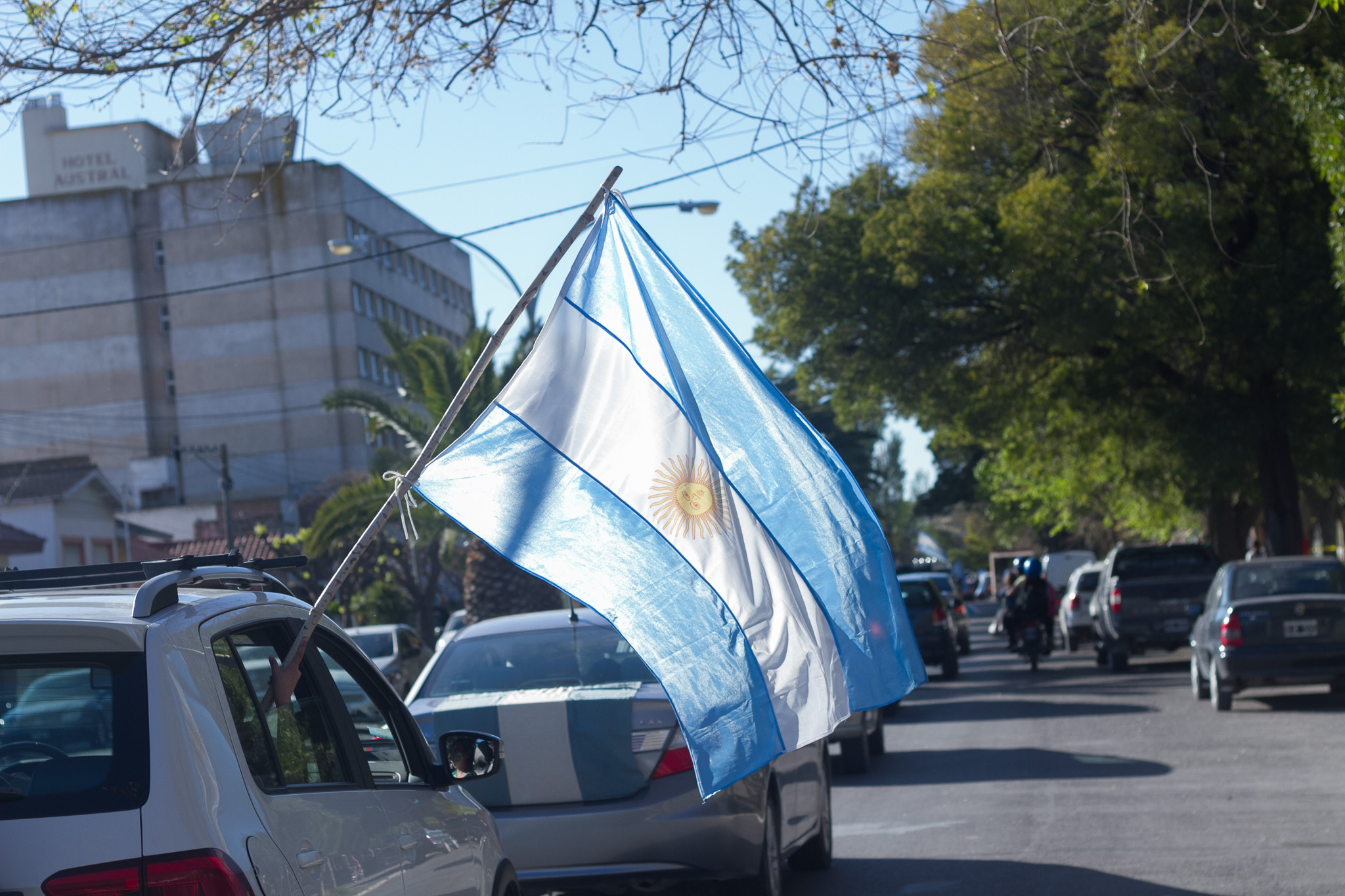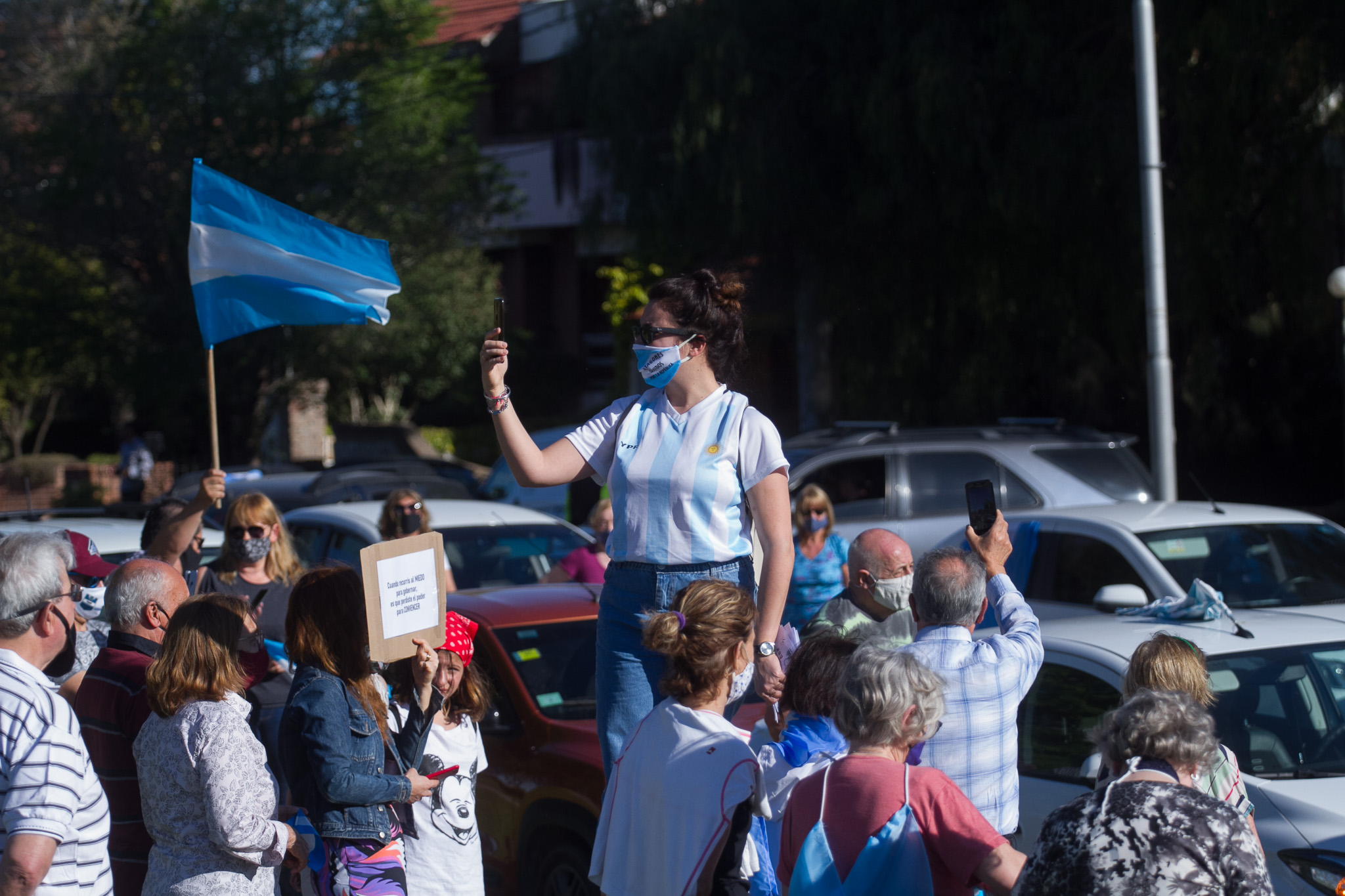 En la plazoleta del fundador Francisco de Viedma, los manifestantes cantaron el himno nacional y luego treparon a los autos para hacer oír su descontento haciendo sonar las bocinas.
