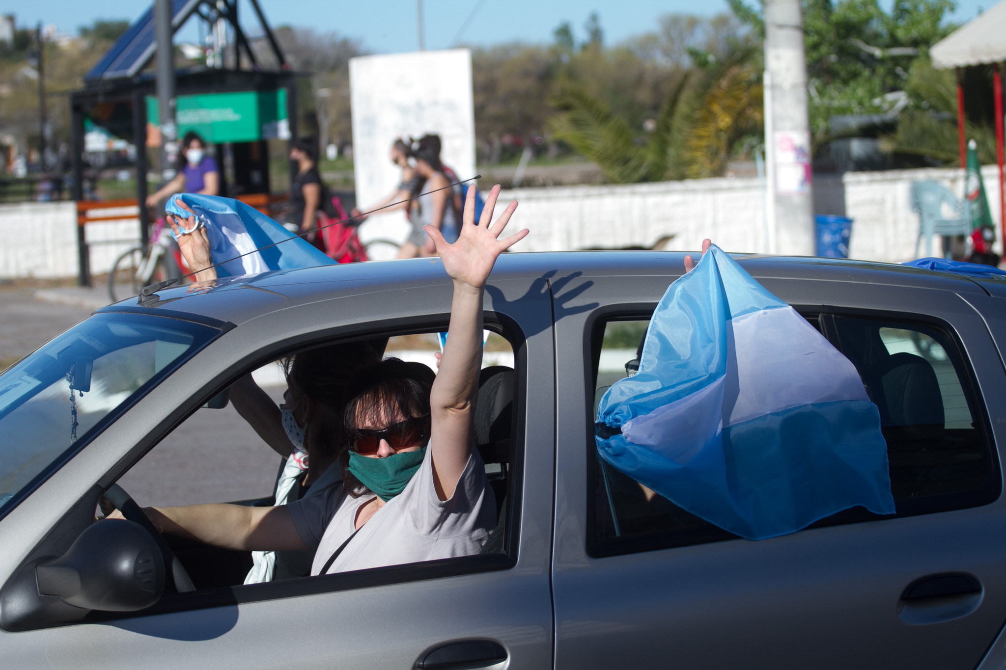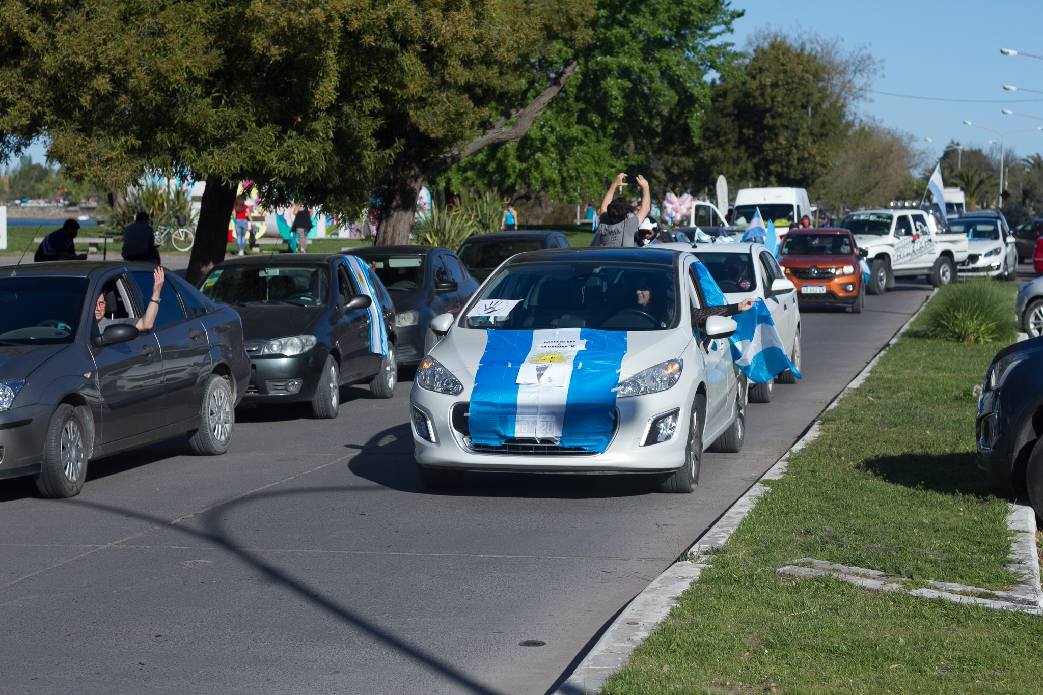 Mezclada entre los habituales visitantes a la costanera, la gente que protestó contra el gobierno nacional se concentró en el monumento a Francisco de Viedma y luego se dirigió en caravana de vehículos por el tradicional paseo.