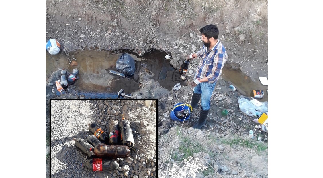 Contaminación: Hallaron 50 botellas con aceite de autos en un canal de Neuquén