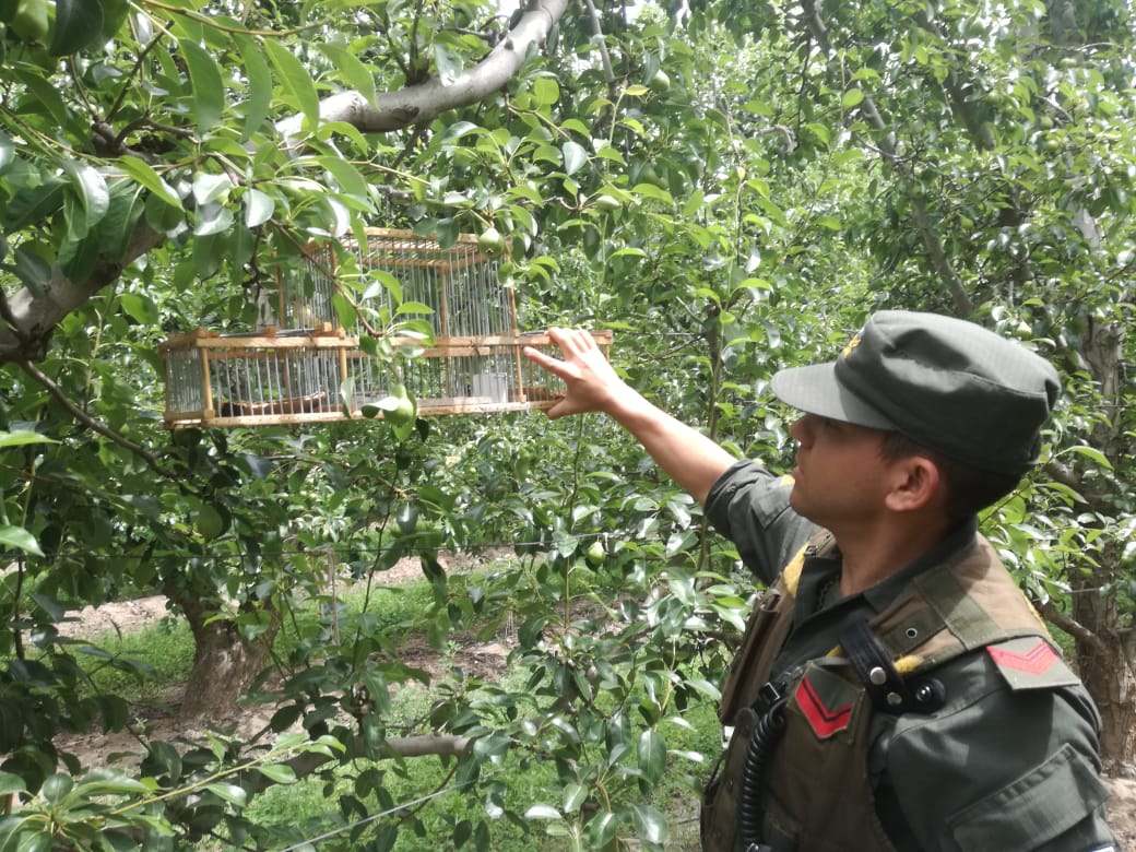 Efectivos de Gendarmería Nacional Nacional, del Escuadrón Núcleo Comahue a cargo del Comandante Jorge Labicz, colaboraron con la investigación previa, y durante el operativo para recuperar los pájaros enjaulados.