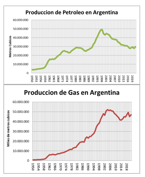 El historial de producción de petróleo y de gas natural, se puede encontrar en datos publicados en la página web de la secretaria de Energía de la Nación, Producción de Petróleo y Gas | Argentina.gob.ar desde 1950 a la fecha, antes de la misma se tienen que buscar otros registros.